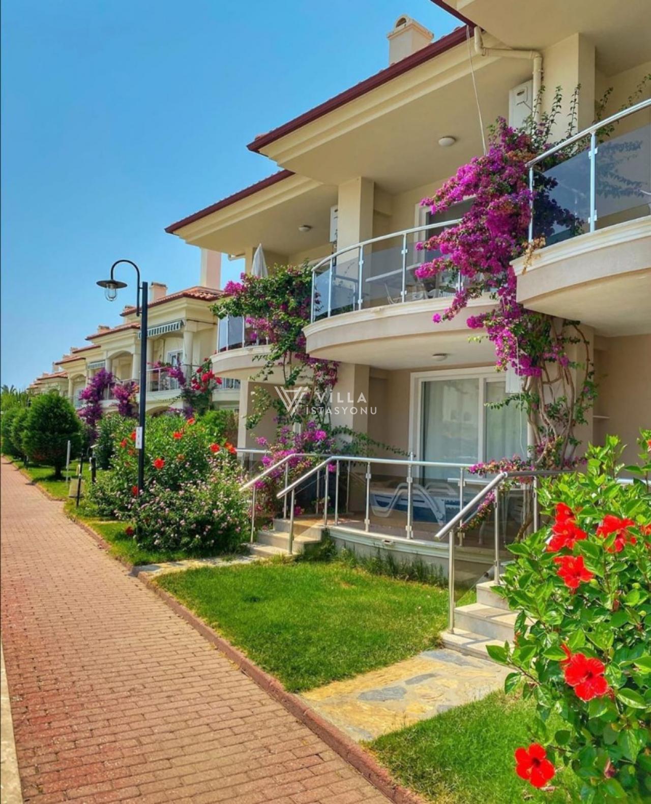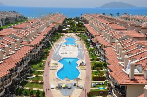 Bakımlı bir site içerisinde yer alan dairemizin ortak kullanımı için sitenin orta kısmında 7 adet ortak yüzme havuzu bulunmaktadır. Eğer isterseniz de birkaç dakika yürüyerek denize ulaşabilirsiniz. Site içerisinde özel plaj, restoran ve market bulunmaktadır.