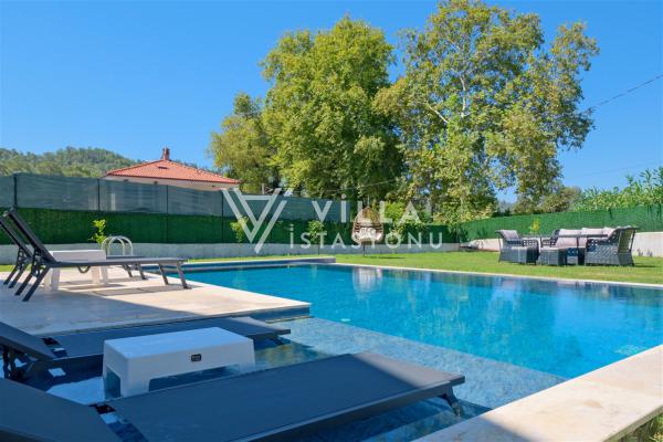 Villamızın en öne çıkan özelliklerinden biri, özel havuzudur. Kendi havuzunuzda yüzmenin keyfini çıkarırken, etrafınızı saran yeşillikler ve dağ manzarası eşliğinde huzur dolu anlar yaşayabilirsiniz. Akşamları ise villanın geniş terasında sevdiklerinizle birlikte keyifli vakit geçirebilir ve gün batımının tadını çıkarabilirsiniz.