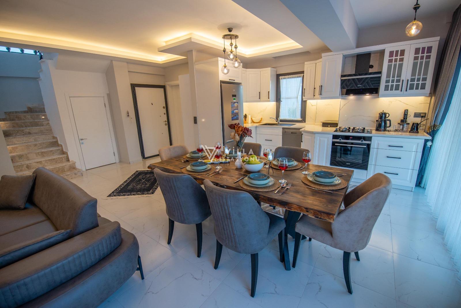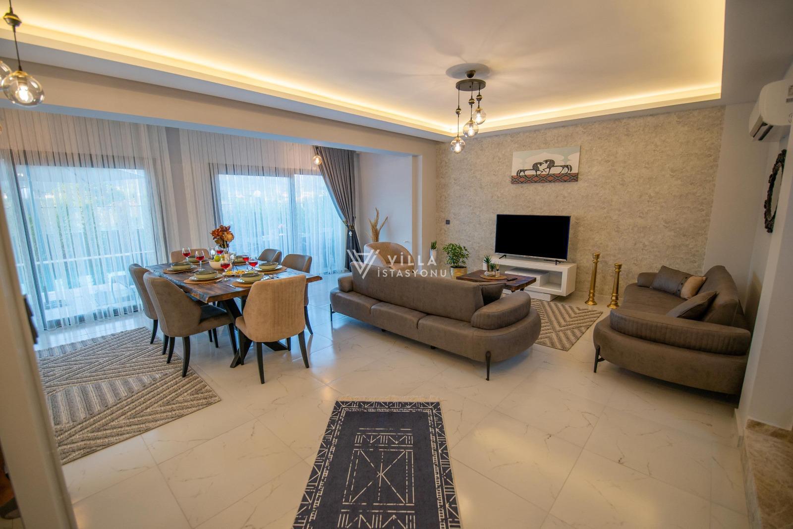Fethiye’nin huzurlu bölgelerinden biri olan Çiftlik Mahallesi'nde konumlanan bu modern villa, 3 yatak odası ve 6 kişilik konaklama kapasitesiyle aileler ve arkadaş grupları için ideal bir tatil seçeneğidir. Villanın her detayı, misafirlerin konforu düşünülerek özenle tasarlanmıştır.