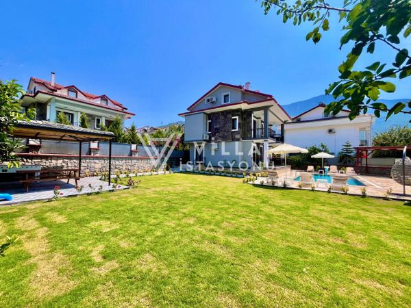 Oldukça geniş ve yeşil bir bahçe içerisinde Kamelya, özel havuz, havuz başı duş, 8 adet şezlong, yeteri kadar şemsiye, yemek masası ve sandalyeler bulunmaktadır.