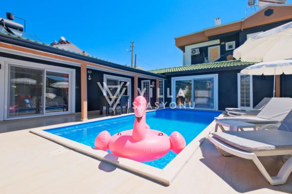 Kendi elimiz ile özenle tasarlanıp, inşa edilip, modern ve şık bir şekilde eşyalandırılmış villalarımızdan birtanesidir. Bu evimiz hem balayı çiftlerimize hemde 4-5 kişiye kadar olan geniş aile gruplarmıza yeterince konaklama kapasitesine sahiptir. Villamız içeriğinde tüm modern mutfak eşyaları ve yine tüm salon eşyaları modern bir şekilde dizayn edilmiştir.