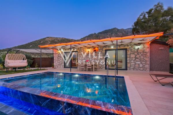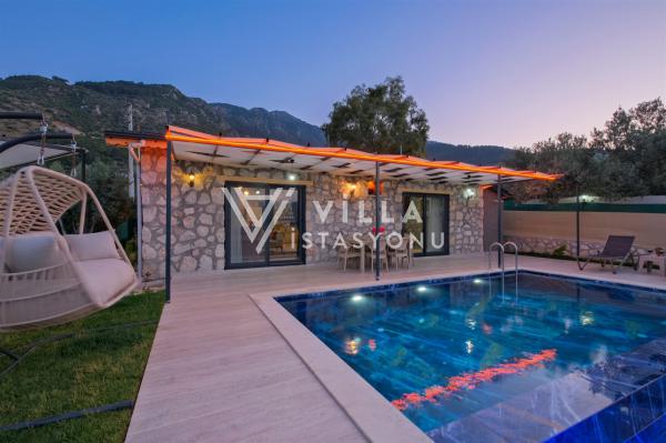 Bahçe : Özel bahçe içinde villaya ait özel yüzme havuzu, şezlong, şemsiye, salıncak, yemek masası ve sandalyeler, mangal bulunmaktadır.