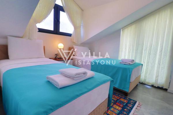 Toplam 4 yatak odasından oluşmuş, 8 kişi konaklama kapasitesine sahiptir. Geniş aileler ve kalabalık arkadaş grupları için oldukça idealdir. Oldukça şık ve modern bir şekilde döşenmiş olan villamızda misafirlerimiz için herşey düşünülmüştür. Havuz terasında bulunan şezlonglarda güneşlenebilir, bahçe masasında muhteşem yemekler yiyebilir, salıncakta sallanıp keyifli dakikalar geçirebilirsiniz.
