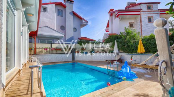 4 yatak odası, 3 banyo – tuvalet bulunan villamız 8 kişilik konaklama kapasitesine sahiptir. 50 m2 büyüklüğünde geniş havuzu, çocuklarınızın rahatlıkla koşup oynayabileceği güvenli ve geniş bahçesi, bahçesinde hamak, sedir , armut koltuk , salıncak, yer minderi gibi oturma köşeleri bulunmaktadır. Şık iç tasarımıyla sizi evinizde hissettirecek konfor alanına sahip villamızın ebeveyn odasında jakuzi, salonunda şömine, bahçesinde ise özel barbekü alanı gibi nadir karşılaşılacak lüks imkanları bulunmakta olup, kalabalık ailelerimize bütçe dostu ve butik bir tatil olanağı sunmaktadır.