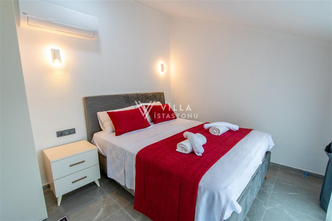 5. Yatak Odası: Çift kişilik yatak, elbise dolabı, klima, ebeveyn banyo ve wc bulunmaktadır. (2.Katta)