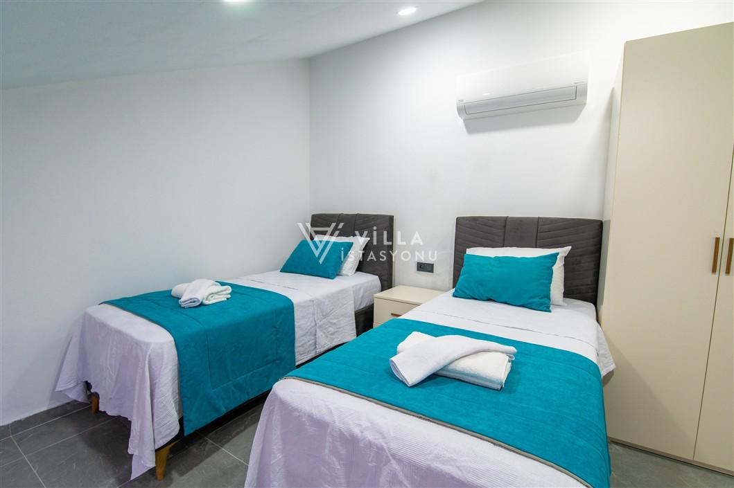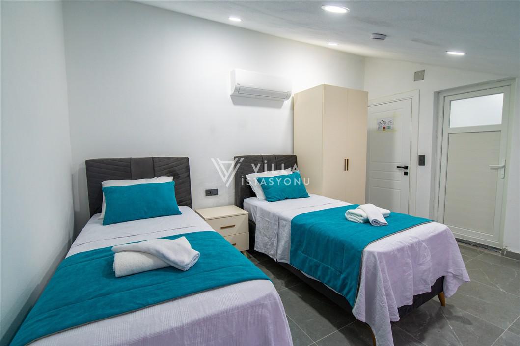 4. Yatak Odası: İki adet tek kişilik yatak, elbise dolabı, klima, bulunmaktadır. (1. Katta)
