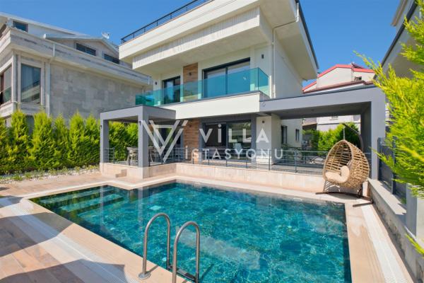 Doğa içinde bulunan villada kapasiteye uygun oturma alanı, şezlong takımı, barbekü alanı, çocuk havuzu ve salıncak; havuz terasına açılan konforlu oturma odası, ihtiyaçlarınızı karşılayacak donanımlı mutfağı bulunmaktadır. Bir yatak odasında çift kişilik yatak, ebeveyn banyosu ve ortak alan da sauna;İkinci ve üçüncü yatak odasında çift kişilik yatak, ebeveyn banyosu;üçüncü yatak odasında iki tek kişilik yatak ve ebeveyn banyosu bulunmaktadır.
