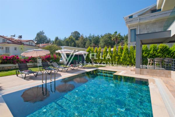 Fethiye Çalış mevkiinde bulunan villa 4 yatak odasıyla 8 kişi konaklama kapasitesine sahiptir. Plaja yürüme mesafesinde ve özel havuz bahçe alanına sahip olup, balayı çiftleri ve çekirdek aileler için idealdir.