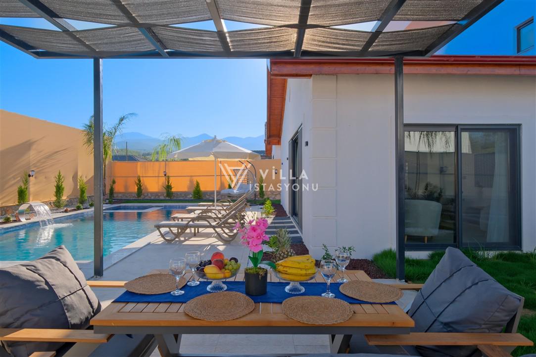 Villa Doğa 2, Fethiye, Seydikemer mevkiinde bulunan 4 yatak odalı 8 kişi kapasiteli özel havuzlu villadır. Geniş aileler için idealdir. Gözlerden uzakta kimsenin sizi rahatsız edemeyeceği huzurlu ve mutlu bir tatil imkanı sunan villamızda misafirlerimiz için herşey eksiksiz yer almaktadır. Ailenizle ve sevdiklerinizle size ait özel havuzunda keyifli vakit geçirebilir ve bahçesinde mangal yakabilirsiniz. Villamızın bulunduğu alanda toplamda 11 adet villa bulunmaktadır. Villaların konumlandırılması birbirinin havuzunu görmeyecek şekilde olup havuzları korunaklıdır. Çocuk havuzu olarakta kullanabilen jakuzili havuzu bulunmaktadır.