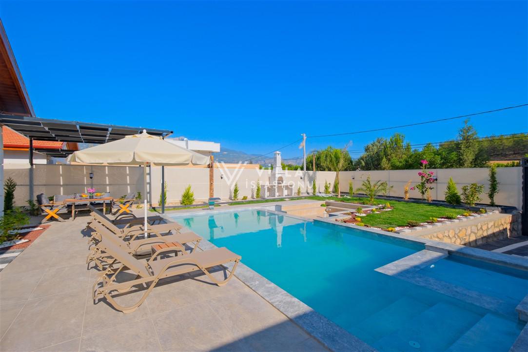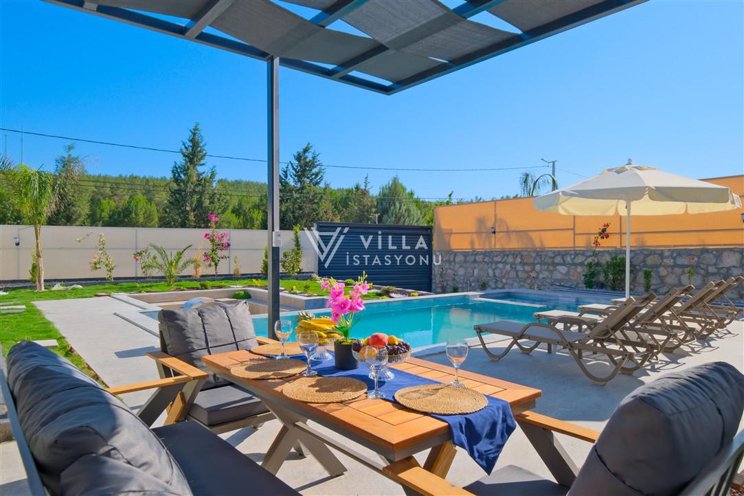 Villa Doğa 9, Fethiye, Seydikemer mevkiinde bulunan 4 yatak odalı 8 kişi kapasiteli özel havuzlu villadır. Geniş aileler için idealdir. Gözlerden uzakta kimsenin sizi rahatsız edemeyeceği huzurlu ve mutlu bir tatil imkanı sunan villamızda misafirlerimiz için herşey eksiksiz yer almaktadır. Ailenizle ve sevdiklerinizle size ait özel havuzunda keyifli vakit geçirebilir ve bahçesinde mangal yakabilirsiniz. Villamızın bulunduğu alanda toplamda 11 adet villa bulunmaktadır. Villaların konumlandırılması birbirinin havuzunu görmeyecek şekilde olup havuzları korunaklıdır. Çocuk havuzu olarakta kullanabilen jakuzili havuzu bulunmaktadır.