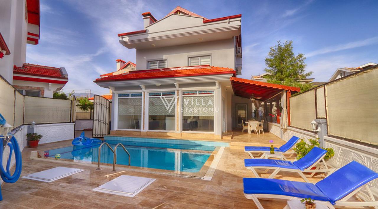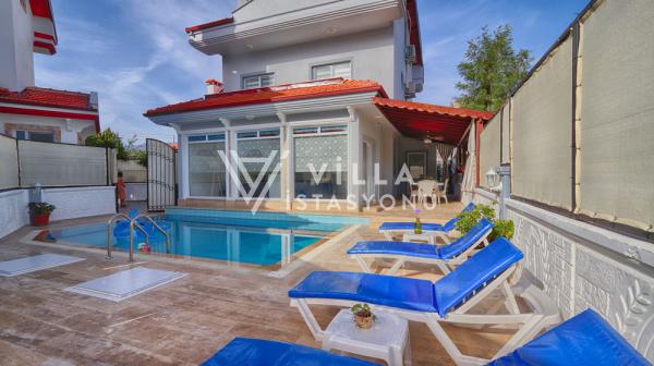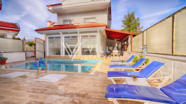 4 yatak odası, 3 banyo – tuvaleti bulunan villamız 8 kişilik konaklama kapasitesine sahiptir. 35 m2 büyüklüğünde özel havuzu, çocuklarınızın özgürce koşup oynayabileceği geniş ve güvenli bir bahçesi, bahçe oturma takımı, yemek masası, barbeküsü ve şezlongları bulunmaktadır. Dolu dolu bir tatil için her olanağı bünyesinde bulunduran villamız, yenilenmiş mobilyaları ile çağa ayak uydurmayı başarmış iç dekorasyonu, minimal ve göz yormayan tasarımıyla tatilin en özel halini yaşamanız için itinayla tasarlandı.
