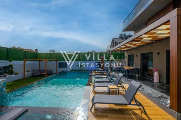 Toplam 8 yatak odasından oluşmuş, 4 kişi konaklama kapasitesine sahiptir. Geniş aileler ve kalabalık arkadaş grupları için oldukça idealdir. Oldukça şık ve modern bir şekilde döşenmiş olan villamızda misafirlerimiz için herşey düşünülmüştür. Havuz terasında bulunan şezlonglarda güneşlenebilir, bahçe masasında muhteşem yemekler yiyebilir, salıncakta sallanıp keyifli dakikalar geçirebilirsiniz.