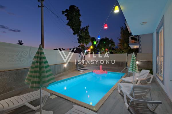 Havuzumuz 3*6 ve 1.50 derinlikte olup yol ve yan cephelerden korunaklıdır. Yanındaki 2. villamız ise Elif-1 aynı konseptedir. Dileyen misafirlerimiz 2 villayıda aynı anda kiralayabilirler ver havuz başındaki bağlantı kapısını açarak geçiş sağlayabilirler.