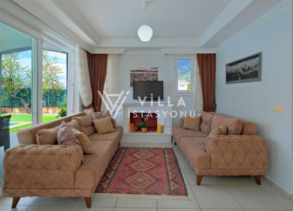 Merkezi konumu sayesinde tercihlerin başında gelen villa, oldukça ferah ve geniş bahçe alanında kapasiteye uygun şezlong takımı, oturma grubu ve barbekü alanına sahiptir. Villanın, yine havuz terasına açılan ve zevkle döşenmiş konforlu oturma odası; tam donanımlı mutfağı, şık iç mimarisiyle ilgi çekmekte olup; bir yatak odasında çift kişilik yatak, ikinci yatak odasında çift kişilik yatak ve üçüncü yatak odasında da iki tek kişilik yatak bulunmaktadır.Her yatak odasında banyo mevcuttur.