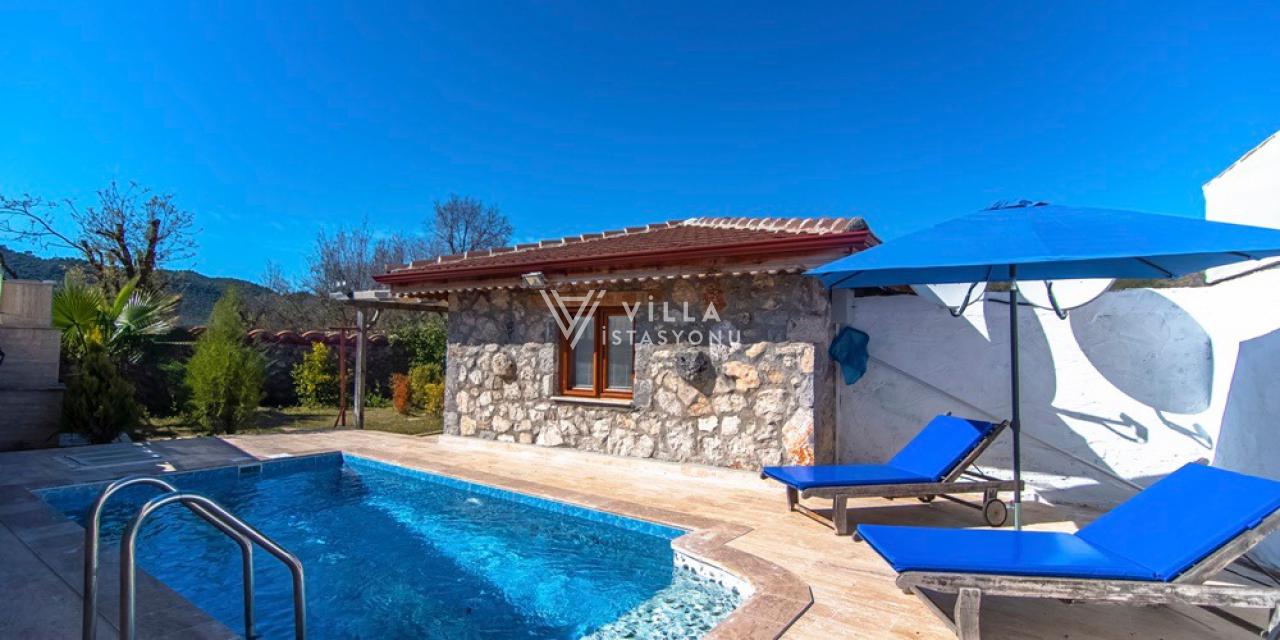 Tarihi ve doğal güzelliklere sahip Fethiye Kayaköy mevkiinde konumlu bulunan Villa Esra, 1 yatak odası ve açık plan salon mutfaktan oluşan tek katlı şirin balayı villamızdır. Misafirlerimiz için her türlü ihtiyacın düşünüldüğü villamız taş mimarisiye göze çarpmaktatır. Villamızın havuz terası korunaklı olduğu için dışarıdan görünmemektedir. Gözlerden uzak sakin ve huzurlu bir tatil arzu eden misafirlerimiz villamızın havuzunda serinleyip şezlonglarda güneşlenerek senenin yorgunluğunu üzerlerinden atabilirler. Akşam yemeklerinizi bahçede bulunan barbeküde hazırlayıp yeme imkanınız olduğu gibi dilerseniz Kayaköyde ki lezzetli menüler içeren restoranlarada uğrayabilirsiniz.