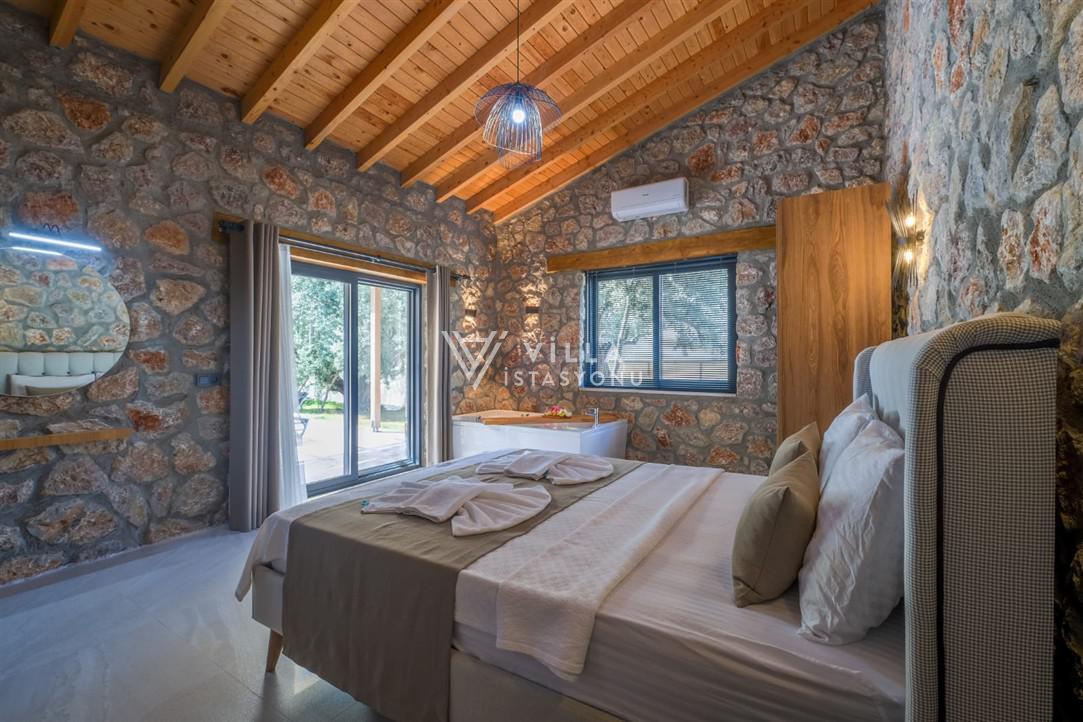 1. Yatak Odası : Yatak odası içerisinde klima, 1 adet çift kişilik yatak, jakuzi, elbise dolabı, komodin ve banyo bulunmaktadır.