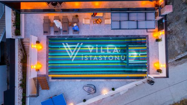Teras alanı içerisinde bulunan bahçe mobilyaları ile siz tatilinizin tadını çıkarırken, çocuklarınız çocuk havuzunda eğlenebilir; siz jakuzinin tadını çıkarırken çocuklarınız oyun alanlarında keyifle eğlenebilirler. Aynı zamanda villanın içerisi de kendinizi evinizin konforunda hissedebilmeniz için tasarlanmış ve mutfağınız, dilediğiniz yemekleri yapabilmeniz adına her türlü detay düşünülerek hazırlanmıştır.