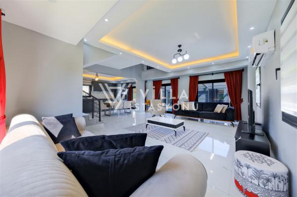 Salon: Konforlu oturma grubu, TV, klima ve havuz terasına çıkış bulunmaktadır.