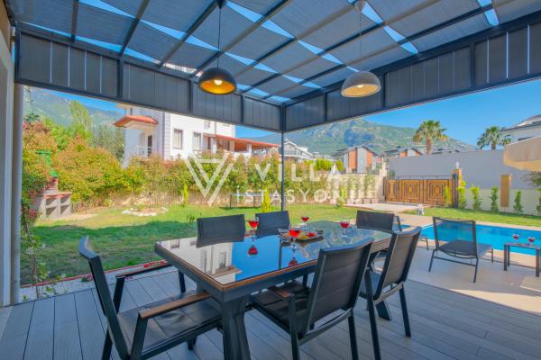 Bahçe : Özel bahçe içerisinde özel havuz bulunmaktadır. Ayrıca villamızın bahçesinde yemek masası ve mangal/barbekü bulunmaktadır.