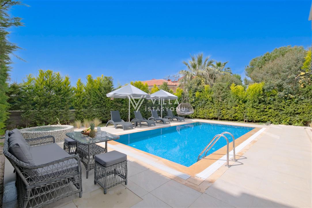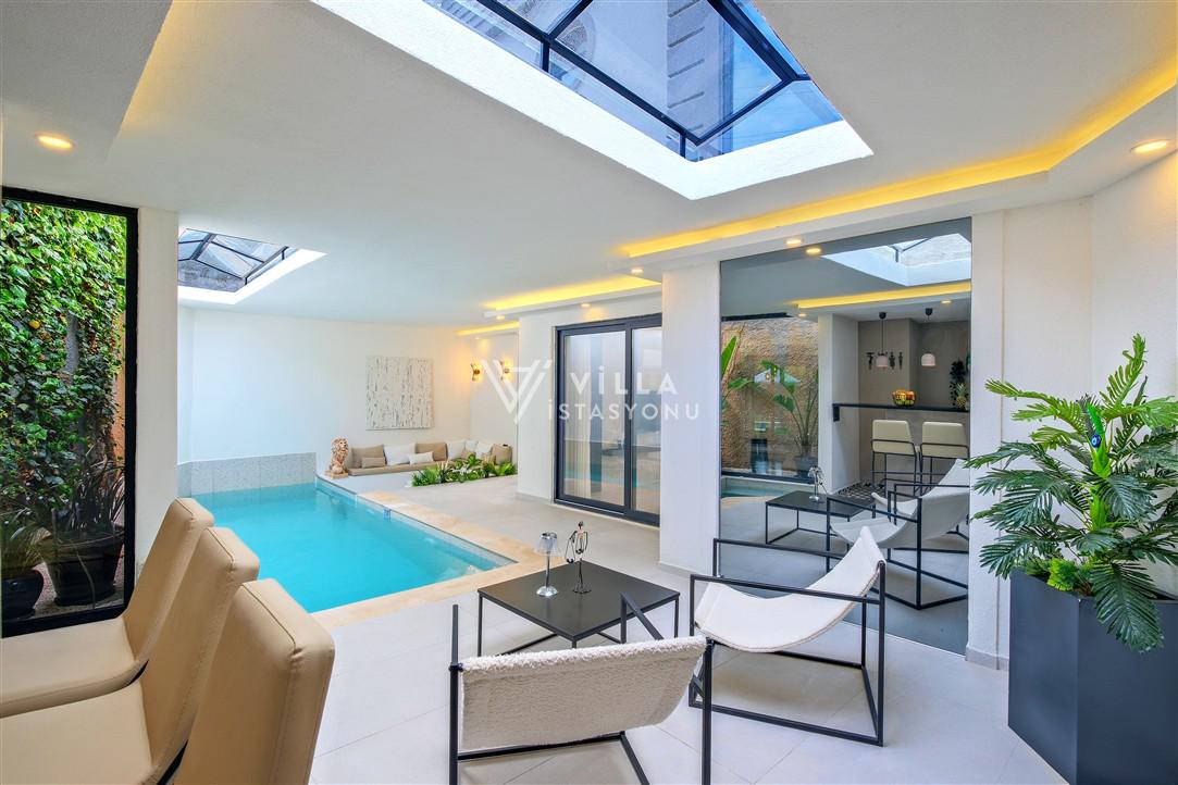 Tatil keyfinizi her mevsim zirveye taşımak için villamızın içerisinde ücretsiz ısıtmalı kapalı havuz, geleneksel hamam ve modern bir sauna mevcuttur. Bahçe alanında ise taşlarla dekore edilmiş, aynı zamanda çocuk havuzu olarak da kullanılabilen şık bir jakuzi ve geniş bir yüzme havuzu yer almaktadır.