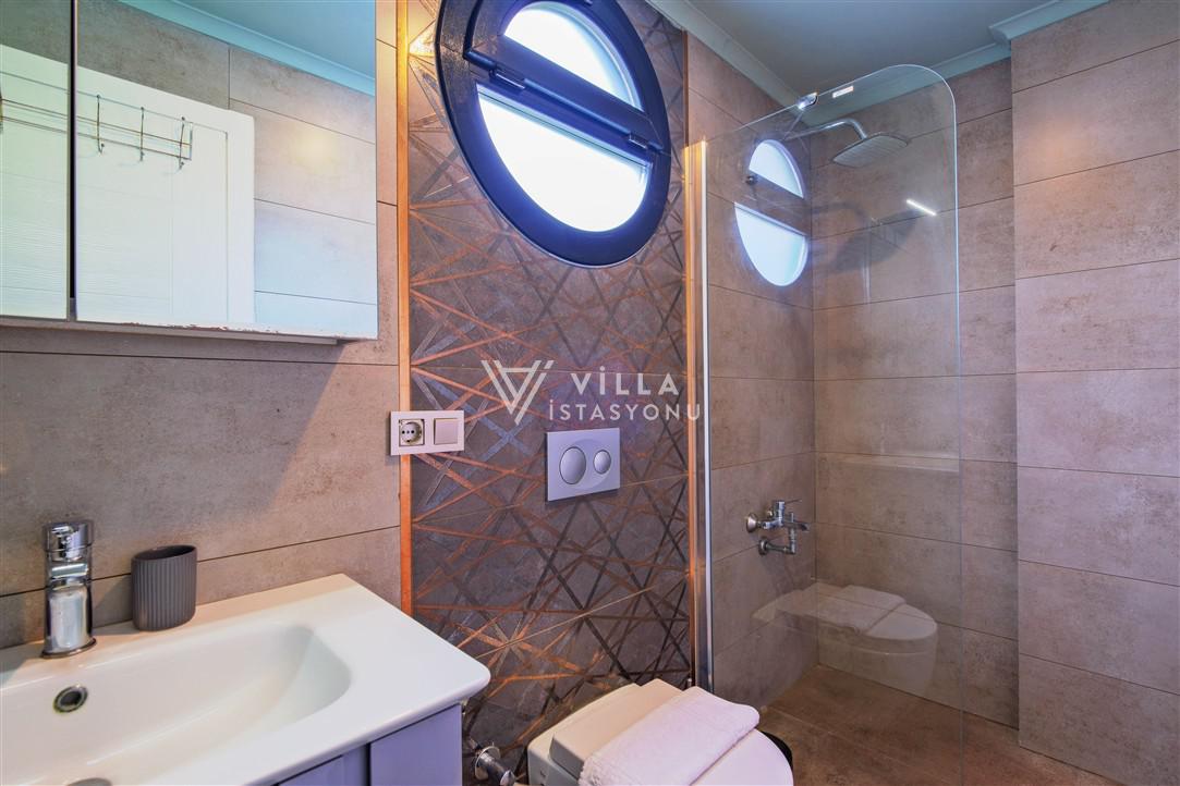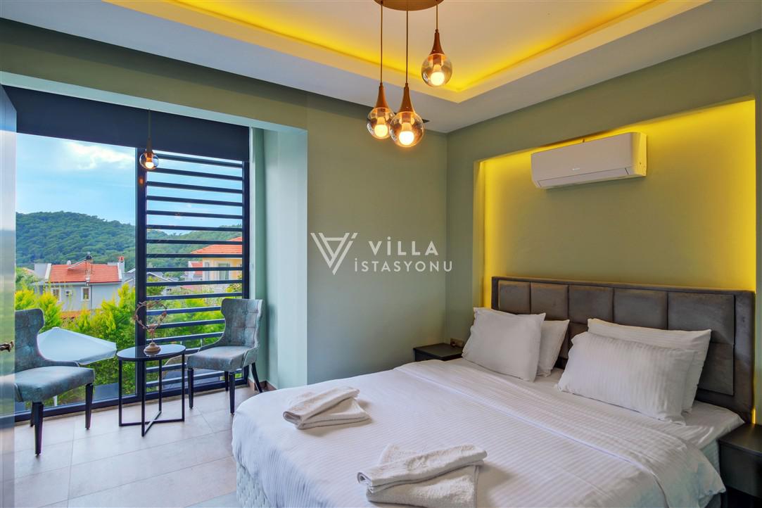 Fethiye’nin en sevilen mevkilerinden Hisarönü’nde konumlanan villamız, lüks mimarisi ve doğa ile iç içe konumuyla misafirlerine unutulmaz bir tatil vadediyor. 8 kişi konaklama kapasitesine sahip olan bu özel mülk, 4+1 oda planıyla tasarlanmış olup her odasında konforunuz için özel ebeveyn banyosu barındırmaktadır. Estetik detayları ve zengin donanımıyla sezonun en iddialı portföyleri arasında yer alan villamızda, hem konforu hem de huzuru bir arada bulacaksınız.