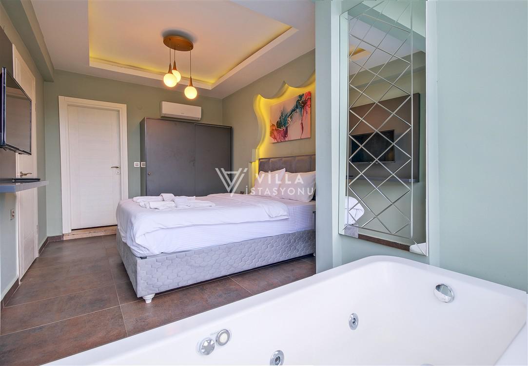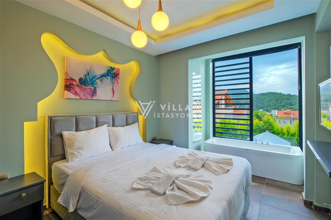 Dış mekanda yer alan konforlu oturma grupları ve güneşlenme alanları, akşamları sevdiklerinizle vakit geçirebileceğiniz bir atmosfer sunar. Ölüdeniz’in eşsiz plajlarına ve Hisarönü’nün canlı eğlence merkezlerine oldukça yakın bir konumda bulunan bu lüks villa, modern tasarımı ve sunduğu SPA olanaklarıyla hayalinizdeki tatili gerçeğe dönüştürüyor.