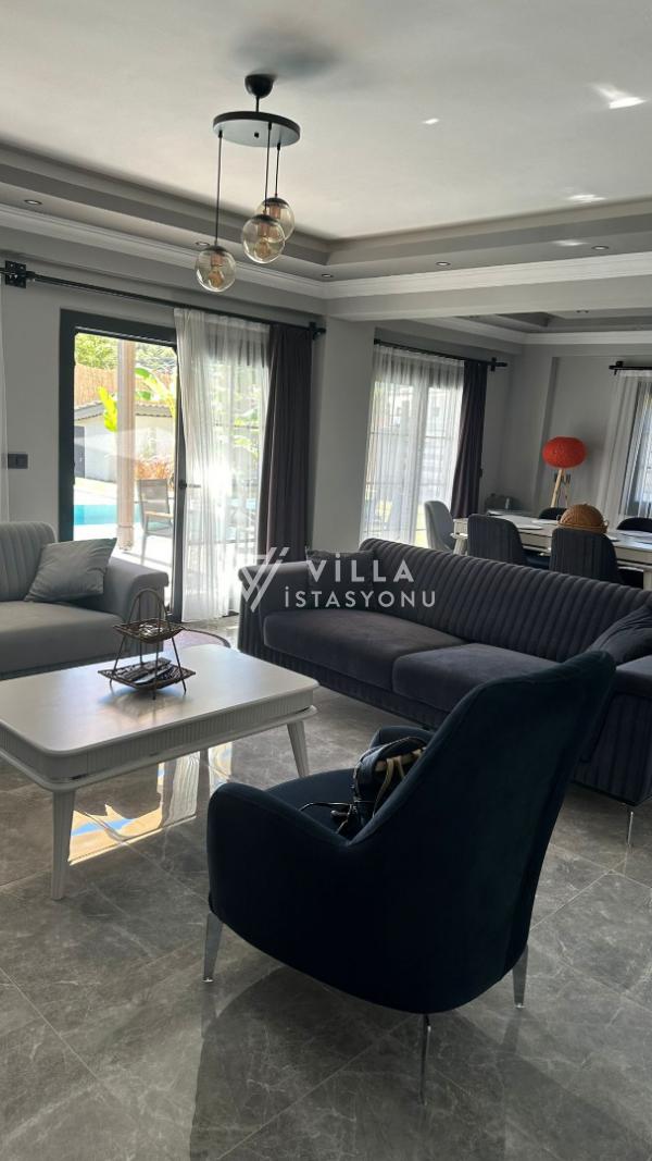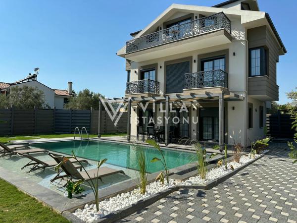 2025 yılında yapımı tamamlanmış olan villamızın, güneşlenip yüzebileceğiniz havuz terasında kapasiteye uygun şezlong takımı, oturma grubu ve barbekü alanı bulunan villanın, yine havuz terasına açılan konforlu oturma odası ve tam donanımlı açık mutfağı; birinci yatak odasında çift kişilik yatak ebeveyn banyosu ve jakuzi; ikinci yatak odasında çift kişilik yatak ebeveyn banyosu; üçüncü yatak odasında ise iki adet tek kişilik yatak ve banyo bulunmaktadır.