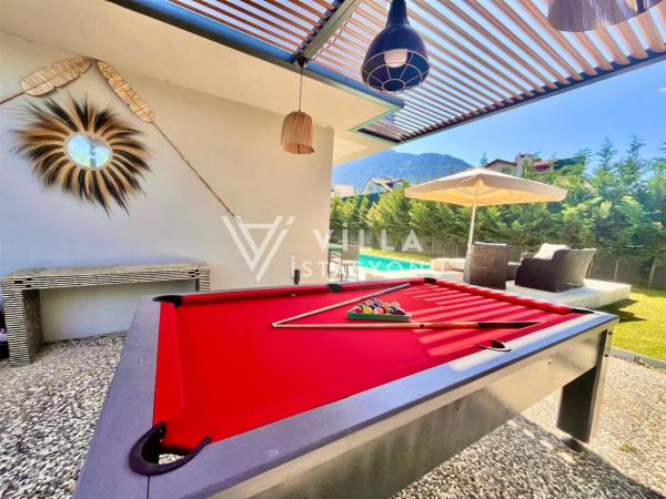 Fethiye’nin en özel ve kaliteli villalarından biri olan Villa Maya, hem konforu hem de eğlenceli özellikleriyle sizi bekliyor. 4+1 odalı bu zarif villa, kapalı havuz ve açık havuz seçenekleriyle tatilinize keyif katarken, sauna ve hamam gibi lüks imkanlarla da rahatlamanızı sağlar. Ayrıca, PlayStation veya sinema odası olarak kullanılabilen aktivite odası, sevdiklerinizle eğlenceli vakit geçirmeniz için ideal bir alan sunuyor.