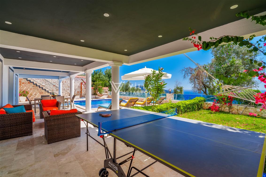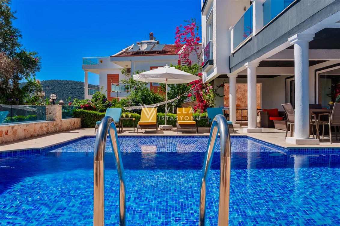 Villamız Antalya’nın en çok tercih edilen tatil bölgesi Kaş/Kalkan mevkiinde yer almaktadır. Masmavi koylara ve muhteşem adalar manzarasına hakim bir noktadadır. Doğa içerisinde, bol oksijenli tertemiz havasıyla konaklayanlarına sağlıklı ve dingin bir tatilin kapılarını aralamaktadır