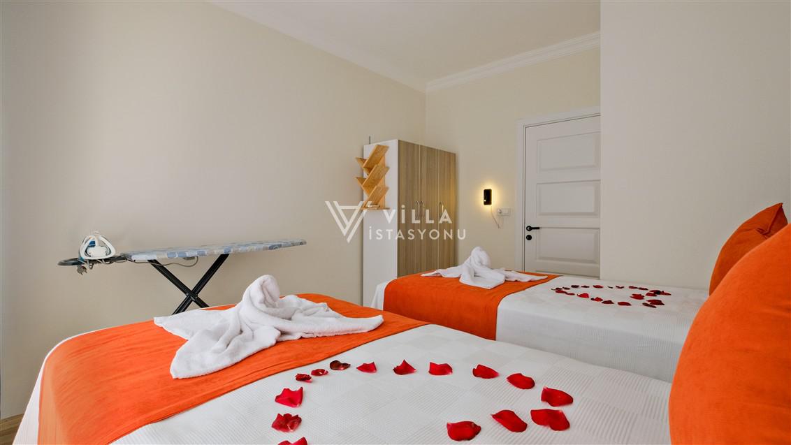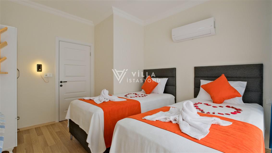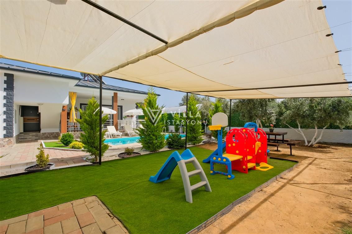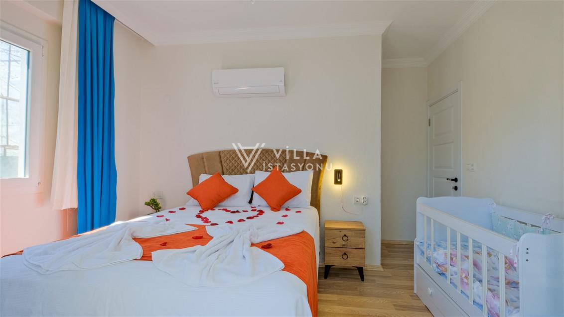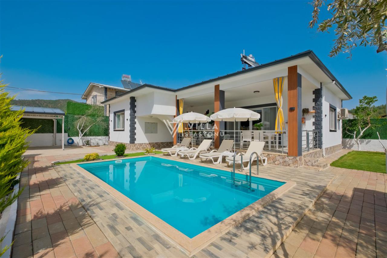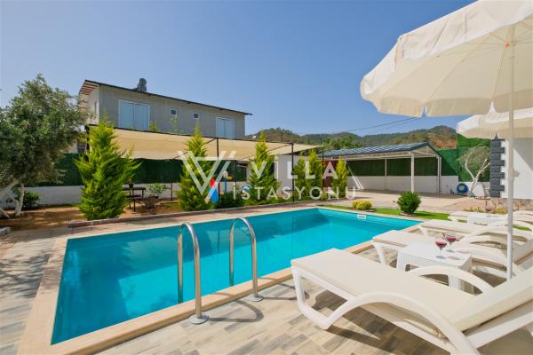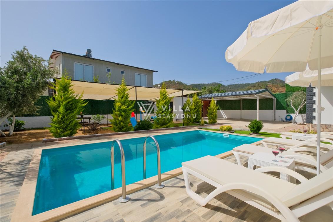Not: Doğa ile iç içe konuma sahip olan tüm villalarımızda düzenli olarak ilaçlama yapılır. Buna rağmen çevrede haşere vb. bulunma ihtimali vardır. Havuzu korunaklı villalarımızda kesinlikle %5 görünmememe garantisi vermemekteyiz. Bu villalarımızda her zaman %5 sakınma payı mevcuttur. Sitemizde bulunan villa fotoğraflarının, görüntüyü ekrana sığdırmak için ’Geniş Açılı Lens’ ile çekilmektedir. Bu sebeple resimlerdeki objeler, gerçek boyutlarından daha büyük veya küçük görünebilmekte.