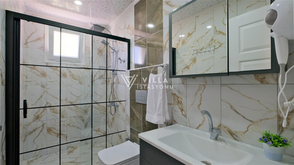 Salon: Açık mutfaklı salon, modern koltuklar, Lcd tv, uydu alıcısı ve havuz-teras alanına çıkışı bulunmaktadır.
