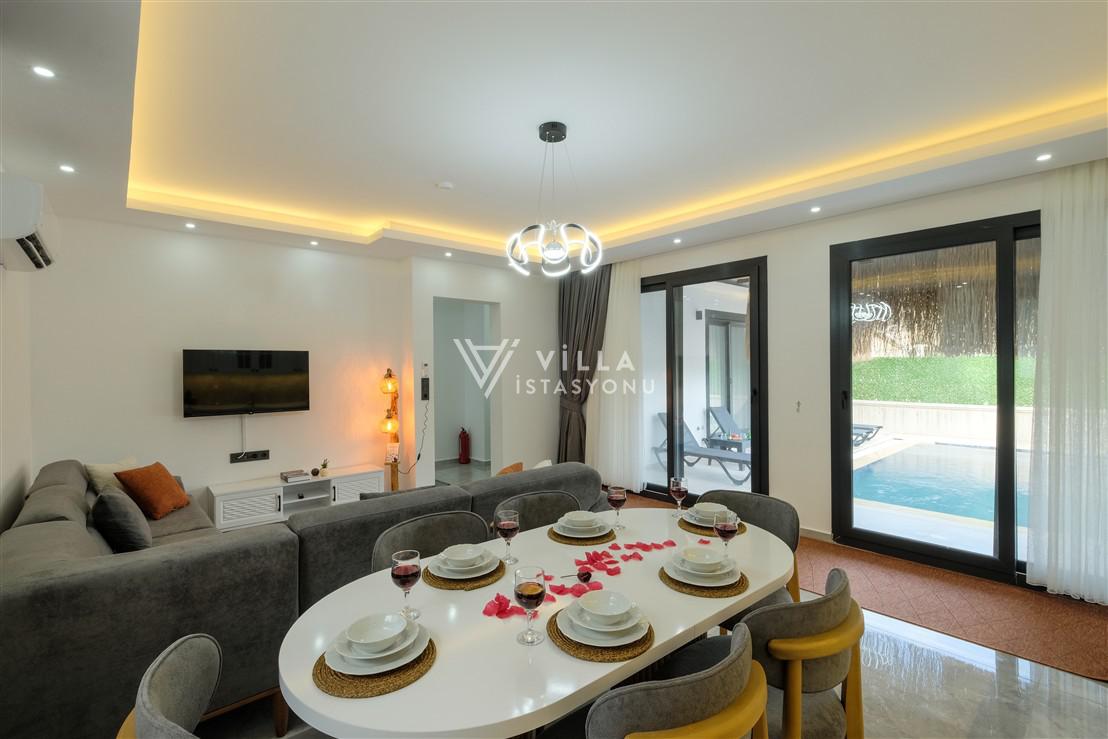 Fethiye Karagedik mahallesinde konumlu, 3 yatak odalı 6 kişi konaklama kapasiteli özel havuzlu ve havuz alanı korunaklı muhafazakar kiralık tatil villasıdır. Çalış plajına 3 km mesafede yer alan Villa Suna kalabalık aile ve arkadaş gurupları için keyifli bir tatil fırsatı sunmaktadır.