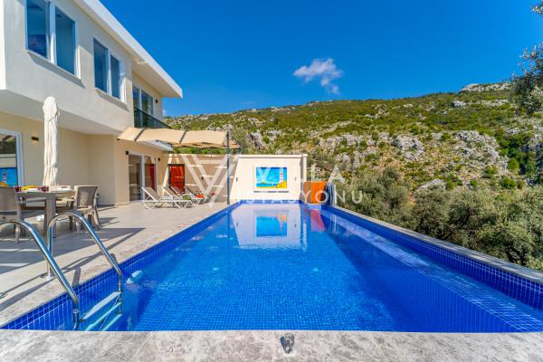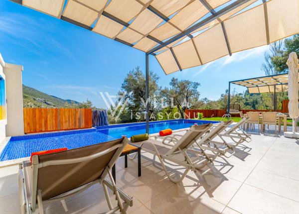 Villa Zens, Kalkan İslamlar mevkiinde konumlandırılmış olup 2 yatak odalı 4 kişi konaklama kapasitesine sahiptir. Villamızın bahçe alanı ve havuz çevresi dışarıdan görünmemesinden dolayı muhafazakar konseptine uygundur. Muhteşem doğa manzarasına karşı sevdiklerinizle birlikte unutulmaz bir tatil fırsatı sunmaktadır.
